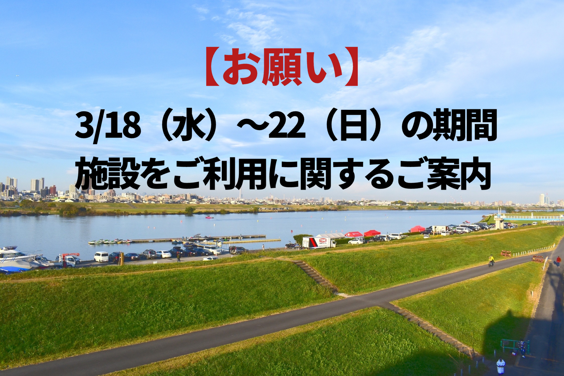 【お願い】3/18(水)~22(日)施設をご利用に関するご案内 いつも当マリーナをご利用いただき、 誠にありがとうございます。 下記期間につきまして、ボー…